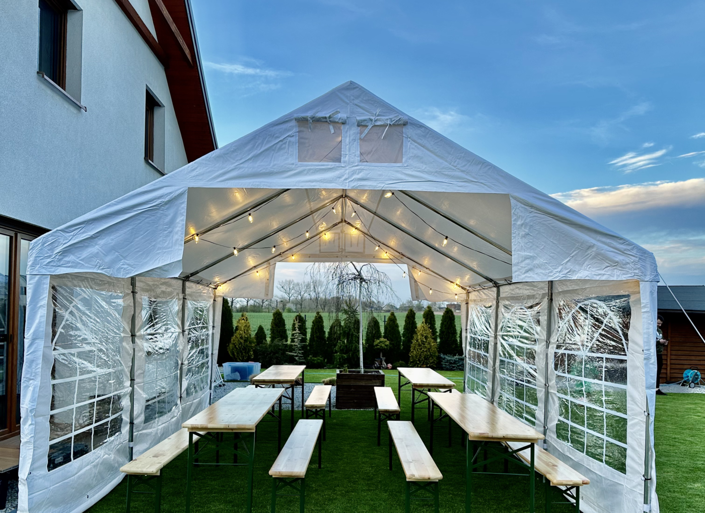 Niezbędne wyposażenie imprez na świeżym powietrzu, zapewniające ochronę zarówno przed deszczem jak i słońcem.